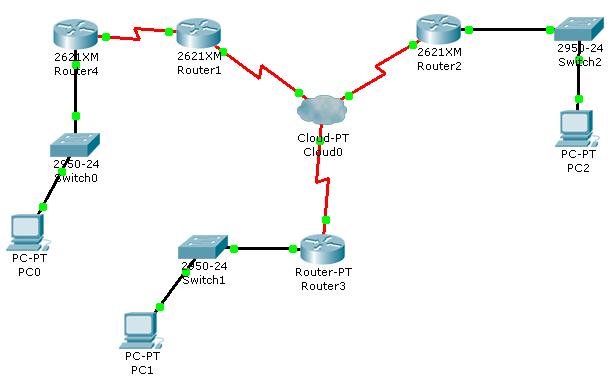 Frame relay Cloud0 испытывает аппаратные проблемы. Из-за этого подсети 10.0.1.0/24 и 10.0.2.0/24 не в состоянии общаться, хотя они настроены правильно.